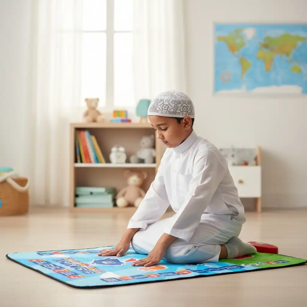 Tapis de prière islamique interactif pour enfants, tapis de prière musulmane, tapis de prière islamique pour enfants Matériau: tissage de perles en coton ABS Taille: 60x100cm Batterie: 3 piles AA de 1.5V (non incluses) Fonction: enseigner de manière interactive les prières pour chaque étape -Il s’agit d’un tapis de prière conçu pour enseigner aux enfants comment effectuer la prière musulmane de manière amusante.