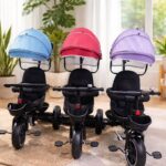 Sa structure pliable et convertible permet plusieurs configurations d’utilisation, offrant une grande flexibilité selon l’âge et les besoins de l’enfant. En phase d’apprentissage, la poignée parentale réglable permet de diriger facilement le tricycle en toute sécurité.